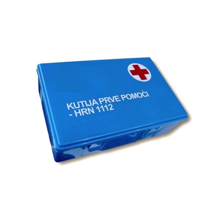 Kutija prve pomoći HRN1112:2022 s naljepnicom HRVATSKI CRVENI KRIŽ
