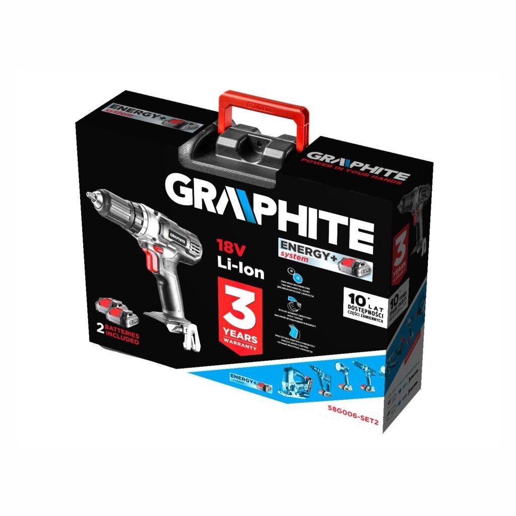 GRAPHITE aku bušilica / odvijač SET 18V 55Nm – s baterijama 2 Ah i koferom