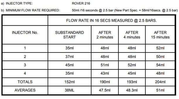 tablica protoka goriva kroz prljave injektore kod uporabe TEC 2000