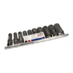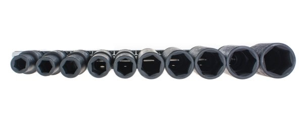 SET DUGIH 6-KUTNIH UDARNIH NASTAVNIH KLJUČEVA 1/2″. SET SADRŽI 10 KOMADA (10-11-12-13-14-17-19-21-22-24 MM) I POSTAVLJEN JE NA METALNU TRAKU. NASTAVNI KLJUČEVI SU IZRAĐENI OD VISOKOKVALITETNOG KROM-MOLIBDENSKOG ČELIKA (CRMO SCM440) I NAMIJENJENI SU ZA RAD S UDARNIM KLJUČEVIMA. SET KLJUČEVA NAMIJENJEN JE AUTO RADIONICAMA.