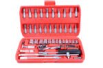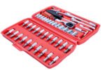 – 1 x 72-zuba 1/4″ račva – 13 x 1/4″ nasadni ključevi: 4; 4,5; 5; 5,5; 6; 7; 8; 9; 10; 11; 12; 13; 14 mm – 6 x TORX bitova odvijača: T10; T15; T20; T25; T30; T40 – 6 x HEX bitova za odvijač: 3; 4; 5; 6; 7; 8 mm – 3 x križni odvijač: Ph1; Ph2; Ph3 – 3 x Pozidriv bita odvijača: Pz1; Pz2; Pz3 – 3 x nastavci za odvijač s prorezom: 4; 5,5; 7 mm – 2 x 1/4“ produžetka: 50; 100 mm – 1 komad odvijača 1/4″, 150 mm – 1 komad kliznog gumba 1/4″, 115 mm – 1 komad fleksibilnog produžetka 1/4″, 150 mm – 1 komad univerzalnog zgloba 1/4″ – 1 komad adaptera za bitove – 4 komada imbus ključeva 1,27; 1,5; 2; 2,5 – kofer