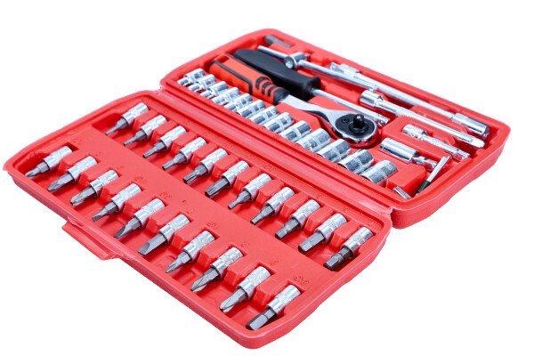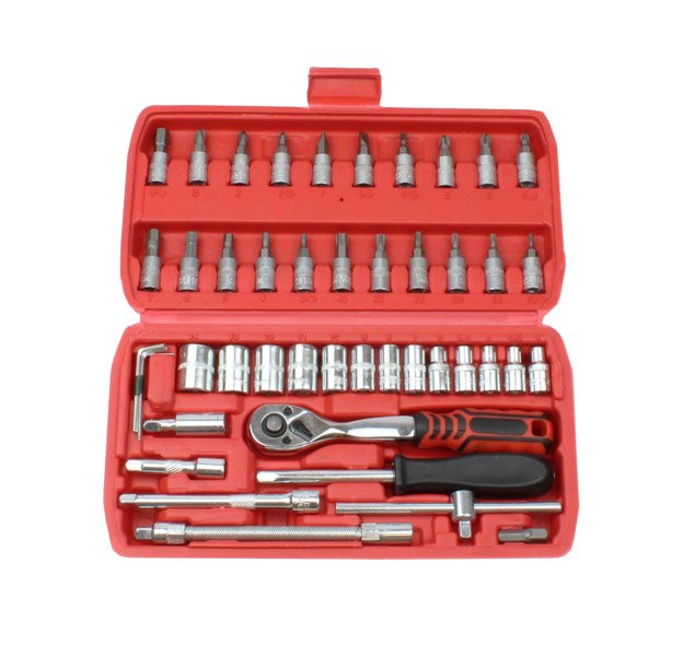 – 1 x 72-zuba 1/4″ račva – 13 x 1/4″ nasadni ključevi: 4; 4,5; 5; 5,5; 6; 7; 8; 9; 10; 11; 12; 13; 14 mm – 6 x TORX bitova odvijača: T10; T15; T20; T25; T30; T40 – 6 x HEX bitova za odvijač: 3; 4; 5; 6; 7; 8 mm – 3 x križni odvijač: Ph1; Ph2; Ph3 – 3 x Pozidriv bita odvijača: Pz1; Pz2; Pz3 – 3 x nastavci za odvijač s prorezom: 4; 5,5; 7 mm – 2 x 1/4“ produžetka: 50; 100 mm – 1 komad odvijača 1/4″, 150 mm – 1 komad kliznog gumba 1/4″, 115 mm – 1 komad fleksibilnog produžetka 1/4″, 150 mm – 1 komad univerzalnog zgloba 1/4″ – 1 komad adaptera za bitove – 4 komada imbus ključeva 1,27; 1,5; 2; 2,5 – kofer