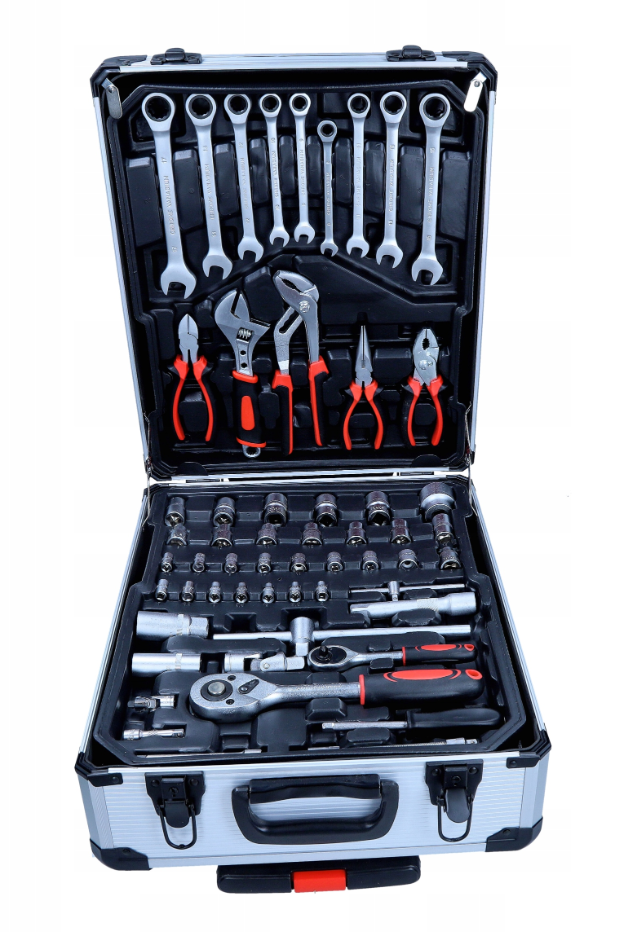 Set CTX.18.0115 je izdržljiv i robustan set alata. Kaljeni ugljični čelik koji se koristi u proizvodnji karakterizira visok udio ugljika, što se odražava na čvrstoći i pouzdanosti cijelog seta. Čvrsta i praktična kutija omogućuje vam da svoj alat držite uredno.