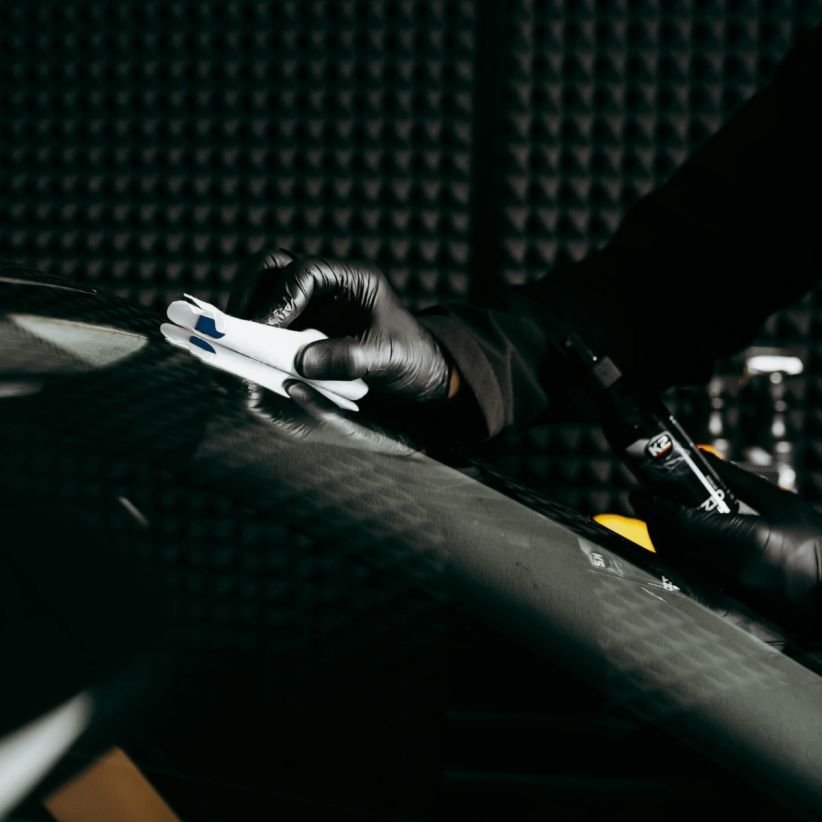 Zatim pomoću aplikatora ili mikrofibre nanesite hidrofobni premaz na staklo. Na internetu možete pronaći način na koji možete staviti nevidljivi brisač pomoću jastučića vate. Ne preporučujemo takva rješenja i preporučujemo korištenje priloženog aplikatora. Nakon nanošenja pričekajte oko 10 minuta i zatim ispolirajte čistom krpom od mikrovlakana.