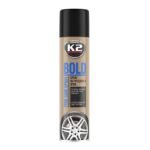 K2 Bold sjajilo za gume brzo je i jednostavno sredstvo namijenjeno za sjaj i održavanje guma. Vraća izvorni izgled, daje sjajan sjaj i duboku crninu. Štiti od UV zraka, pucanja i matiranja. Zahvaljujući svojim hidrofobnim svojstvima , ograničava taloženje prljavštine. Također se može koristiti za sjaj i održavanje ostalih gumenih i plastičnih površina.